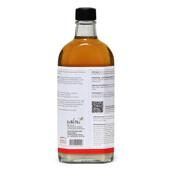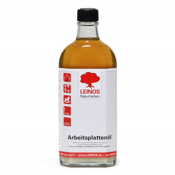 LEINOS Arbeitsplattenöl hat eine sehr gute Fleckenbeständigkeit gegen Kaffee, Rotwein, Fruchtsäfte usw. Es dringt tief in das Holz ein, ist trotzdem diffusionsfähig, antistatisch und belebt die natürliche Struktur und die Tönung der behandelten Hölzer. Erfüllt die DIN 68861 Teil 1 B für Möbeloberflächen und die DIN EN 71, Teil 3 für Kinderspielzeugoberflächen.