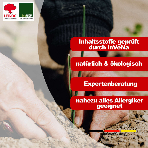 Mit Produkt getränkte Arbeitsmaterialien, wie z.B. Putzlappen, Schwämme, Schleifstäube etc. mit nicht durchgetrocknetem Öl, luftdicht in Metallbehälter oder in Wasser aufbewahren und dann entsorgen, da sonst Selbstentzündungsgefahr aufgrund des Pflanzenölgehaltes besteht. Das Produkt an sich ist nicht selbstentzündlich. Bei Trocknung für ausreichende Lüftung sorgen. Durch die eingesetzten Naturrohstoffe kann ein arttypischer Geruch auftreten. Beim Einsatz von Spritzgeräten einen zugelassenen Atemschutz tragen. Beim Schleifen Feinstaubmaske tragen!