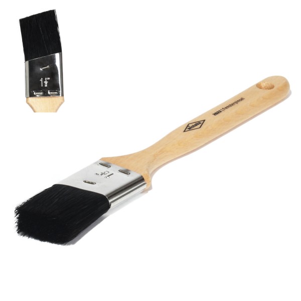 Der Fensterpinsel erleichtert das Streichen von Fenstern oder schmalen Profilen. Durch den Schrägschnitt ist eine präzise Linienführung möglich. Er ist vor allem dafür geeignet Lasuren zu verarbeiten. Der Fensterpinsel hat schwarze Chinaborsten.