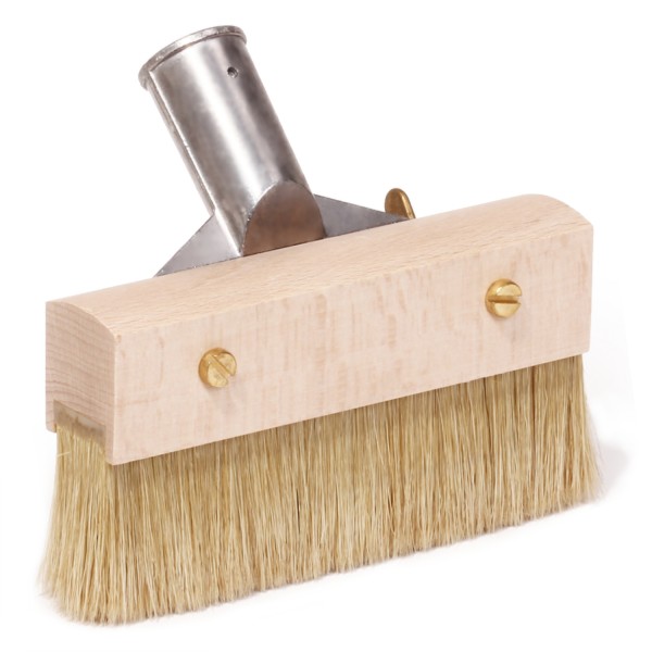 Die Streichbürste hat die Maße 150 x 30 mm. Die hellen Chinaborsten haben eine Borstenlänge von 43mm und werden von einer Holzfassung gehalten. Die Bürste hat einen Stielhalter, der sie flexibel einsatzfähig macht. Die Terrassenstreichbürste empfiehlt sich besonders zum Auftragen von Fußbodenölen.