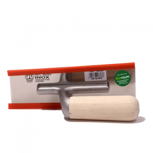 Bügeln Sie einmal anders mit Edelstahl und einem angenehm zu haltenden Holzgriff, für die Verarbeitung von Glätt- und Spachtelputzen.
